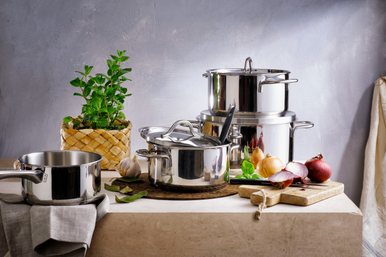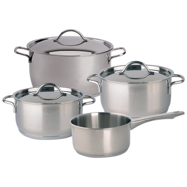 4-delige pannenset van roestvrijstaal: Kwaliteit en veelzijdigheid in uw keuken Een 4-delige pannenset van roestvrijstaal is de ideale keuze voor wie houdt van koken met duurzaam en praktisch keukengerei. Deze set bestaat uit vier pannen van verschillende formaten, geschikt voor diverse dagelijkse kooktaken: Kookpan 18 cm – 2,7 liter Een compacte kookpan die perfect is voor het bereiden van bijgerechten zoals groenten, aardappelen of rijst. Het formaat maakt deze pan zeer geschikt voor dagelijks gebruik in kleinere huishoudens. Kookpan 20 cm – 3,4 liter Een iets grotere kookpan die ideaal is voor soepen, pasta of stoofgerechten. Met voldoende inhoud voor een gezin is deze pan een veelzijdige keuze voor de meeste maaltijden. Kookpan 24 cm – 6 liter De grootste kookpan in de set, perfect voor grotere hoeveelheden. Of het nu gaat om het bereiden van stoofschotels, bouillons of een grote portie chili voor gasten, deze pan biedt de capaciteit die u nodig heeft. Steelpan 16