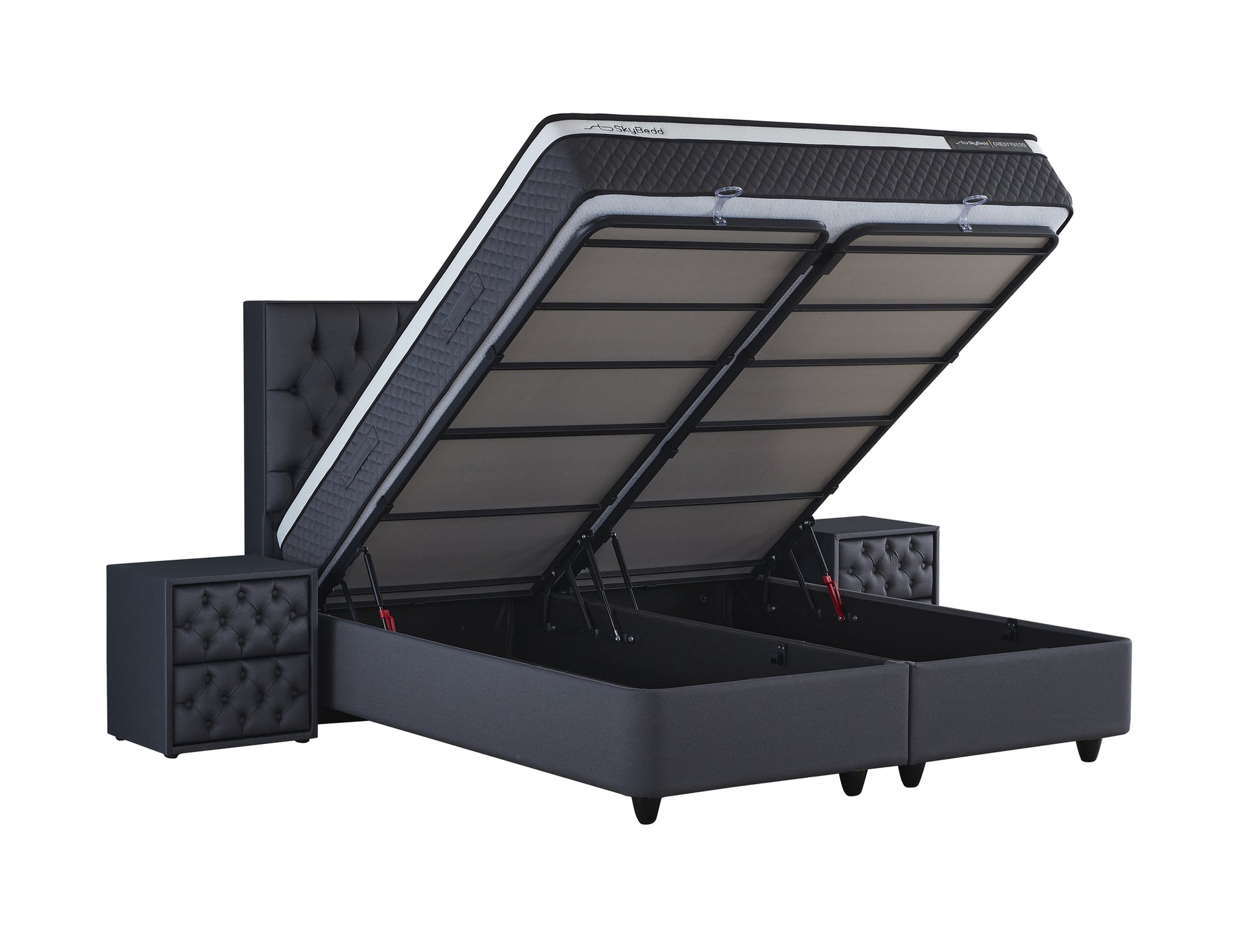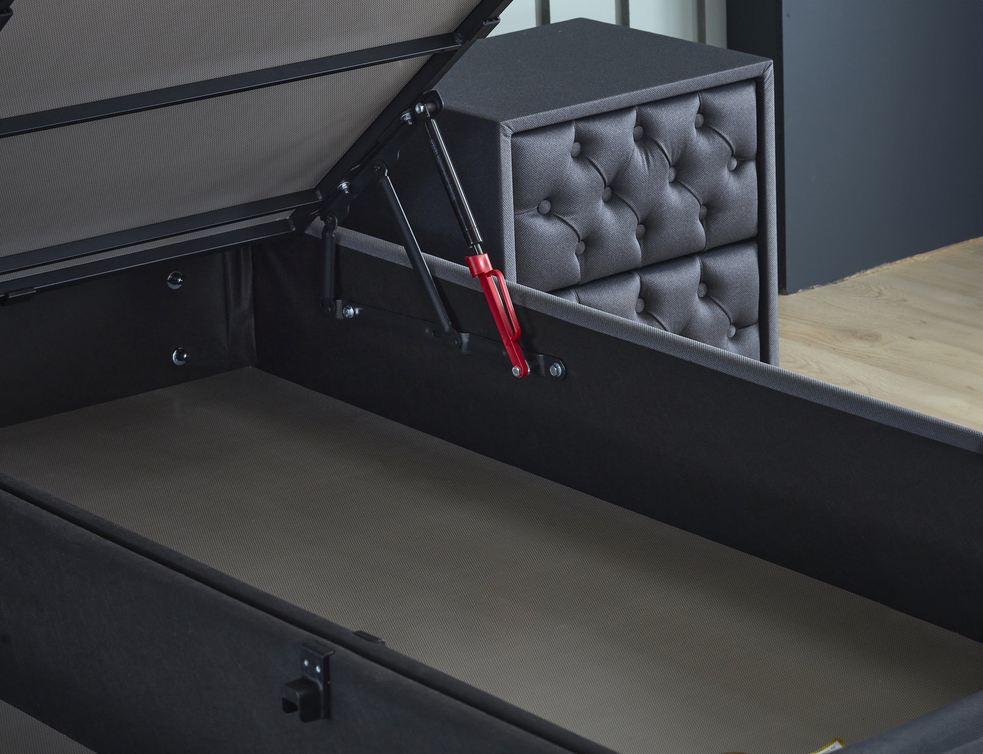 Opbergboxspring Chestybedd Antraciet 180x200