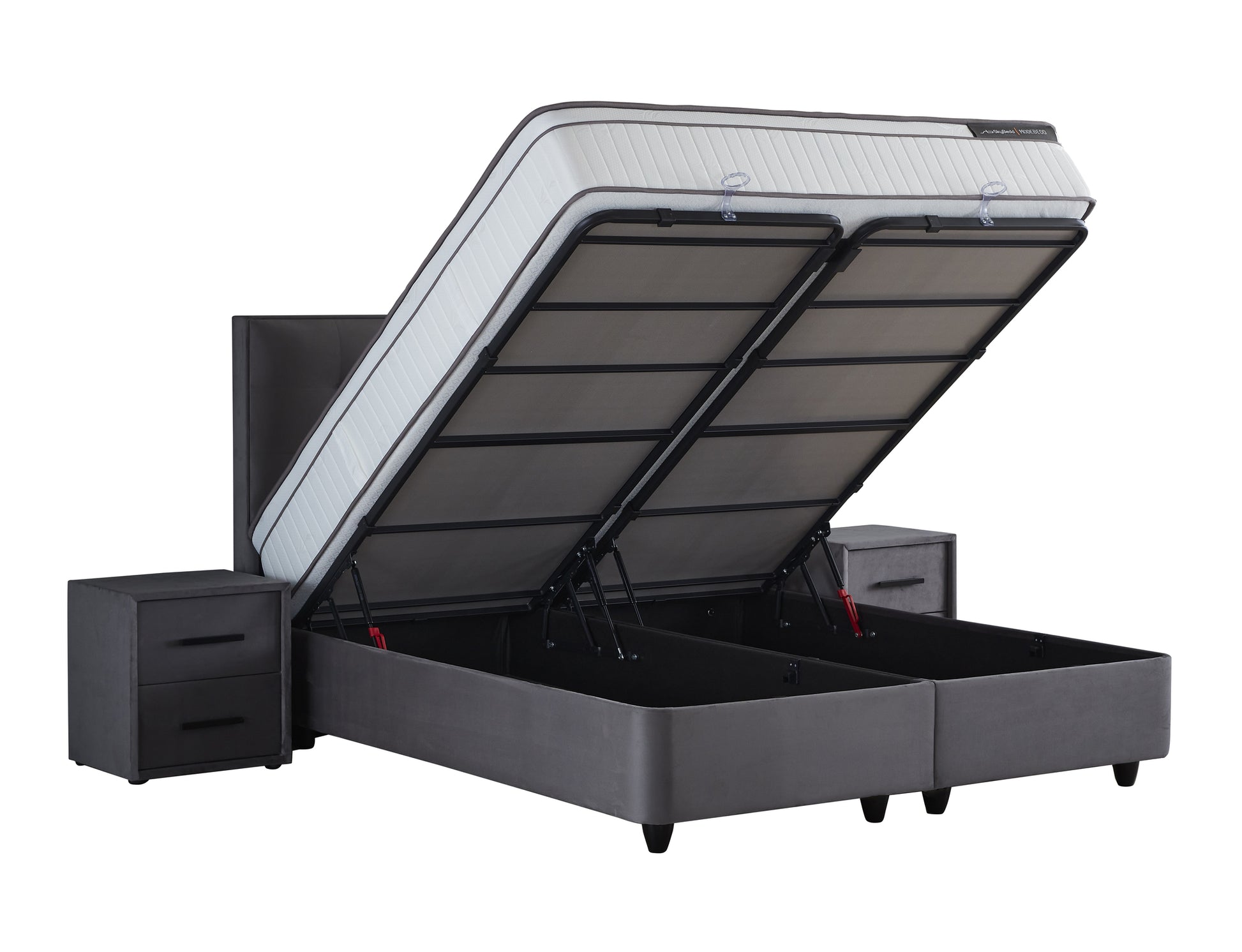 Wat wordt er geleverd? 1 complete boxspring (hoofdbord, onderbox, matras)