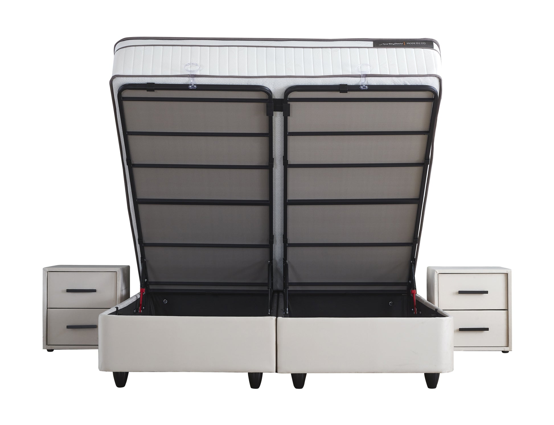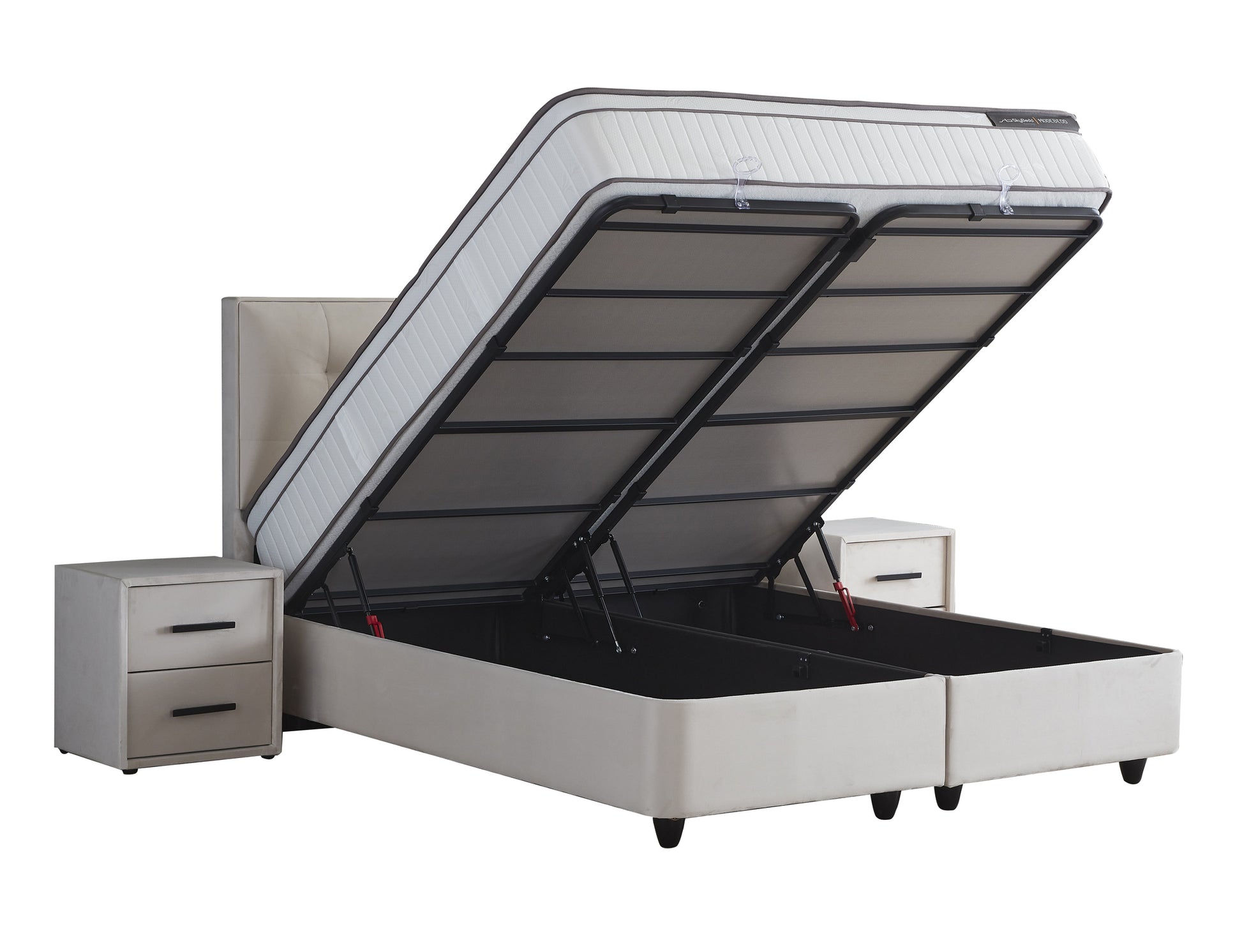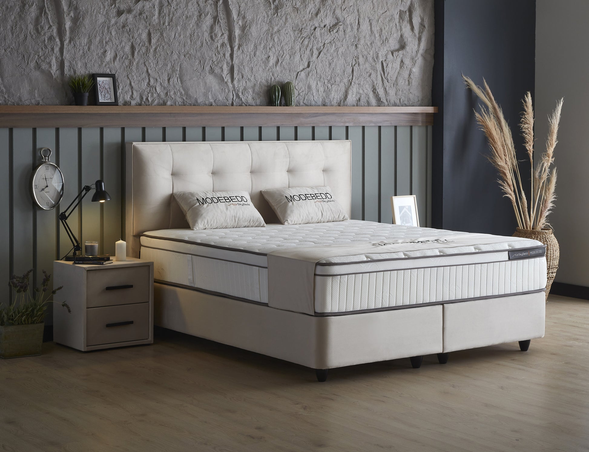 Wat wordt er geleverd? 1 complete boxspring (hoofdbord, onderbox, matras)